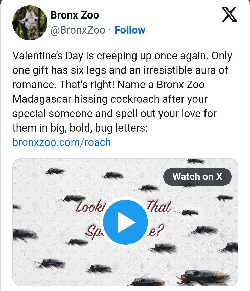 Zoo in US lets you name a cockroach after your ex for Valentine’s Day