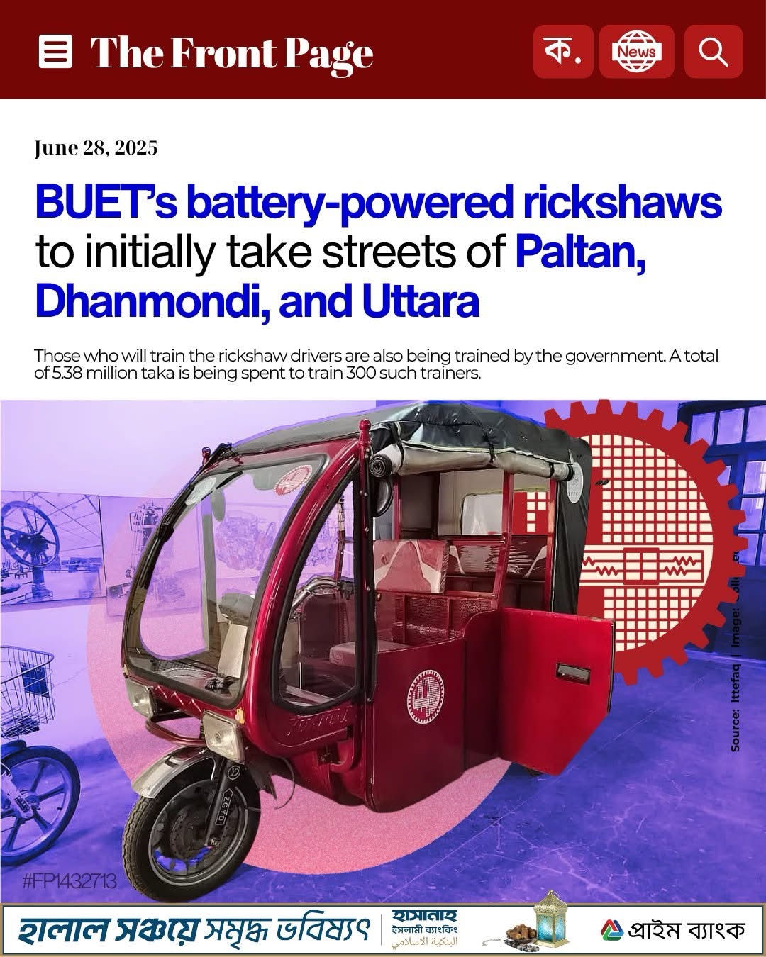 BUET’s “tomtoms/bimans/autos” to take streets of Paltan, DMD and Uttara